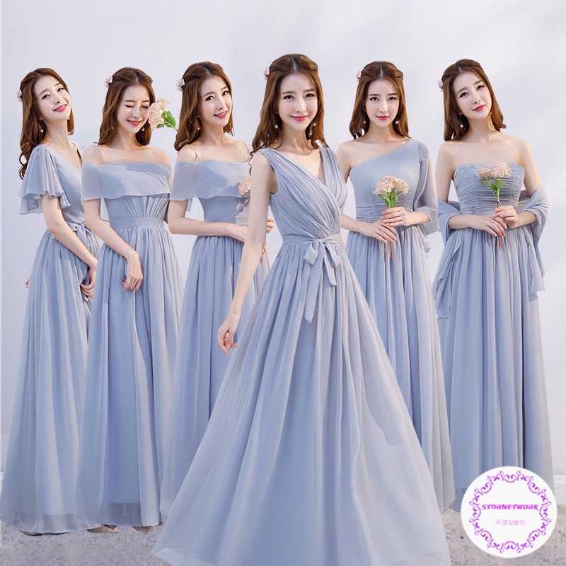 Women S Blue Starry Sky Off Shoulder Bridesmaid Long Dress Shopee Philippines